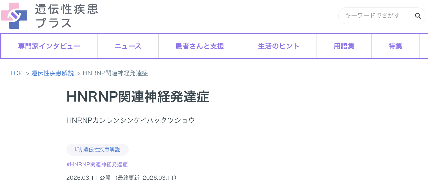HNRNP 疾患はHNRNP 関連遺伝子の突然変異による神経発達障害の総称です。